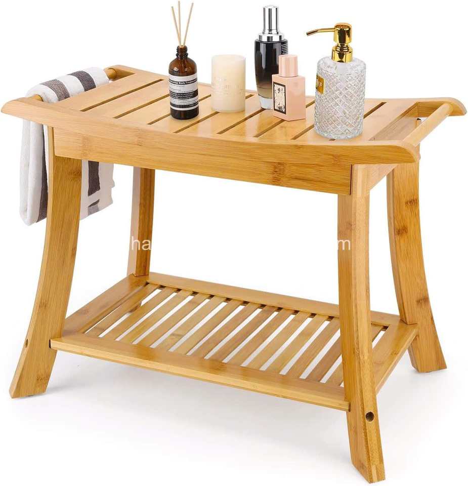 Bamboo Shower Bench & Stool with Storage Shelf Bath Benches for Inside Shower Bathroom Stools 2 Tier Spa Seat for Adults Elderly