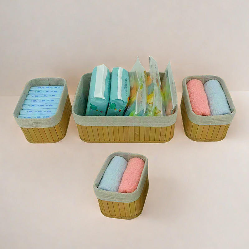 Bamboo Rectangle Storage Basket with Handle-Eco-Friendly Modern Simplicity Design for Desktop Multi-Purpose Use