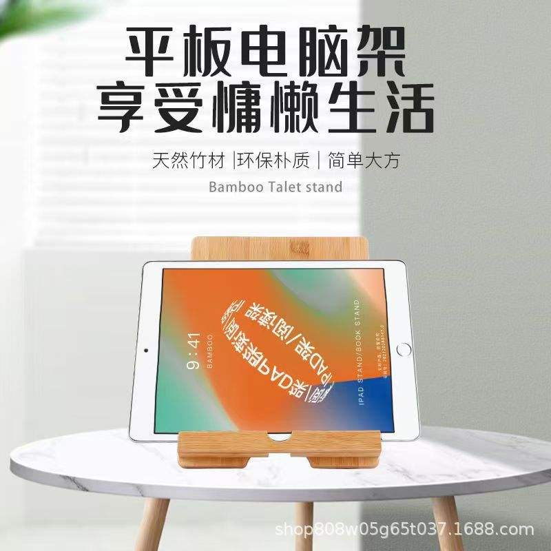 Bamboo Tablet Stand Adjustable Wood Holder Natural Color For Home Office Use