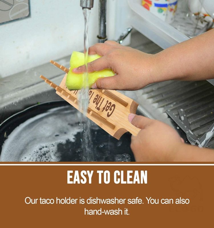 Bamboo Taco Holder Stand Plate Tray with 2 Tongs, Rack Holds 8 Soft or Hard Shell Tacos