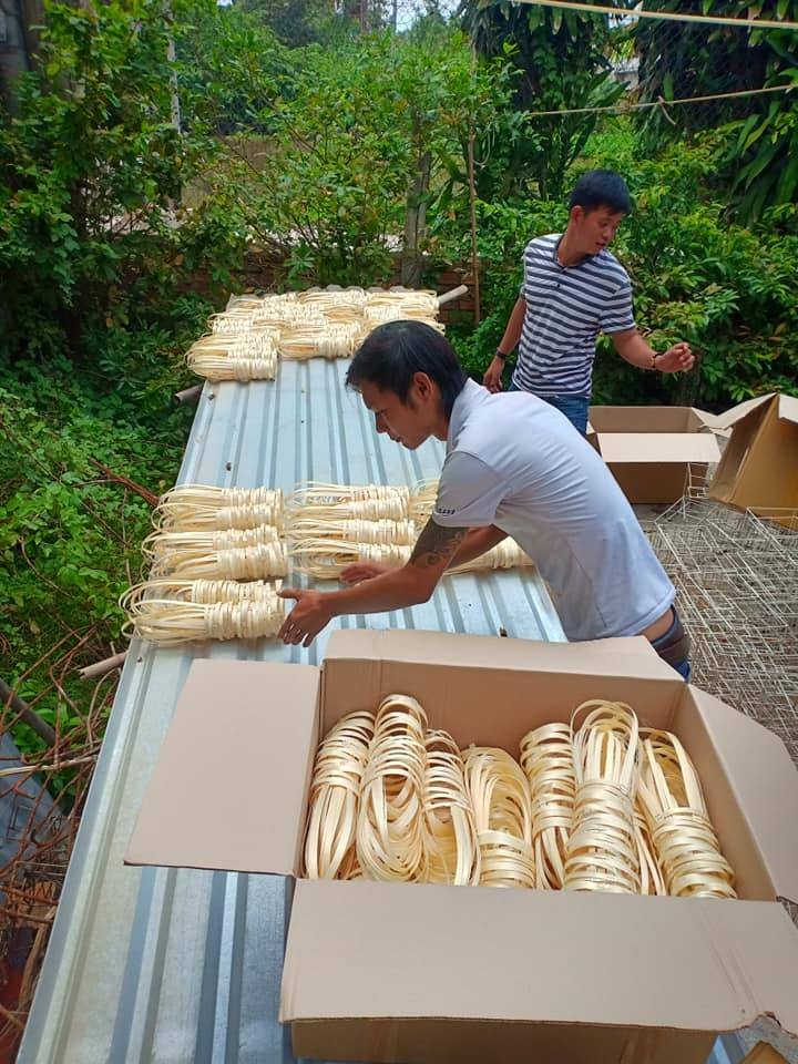 Bamboo Takeaway Cup Holder Handle Eco Drink Sleeve Blue Lotus BEST SELLER 2025 Available Now Vietnam Supply for Giveaways Straw