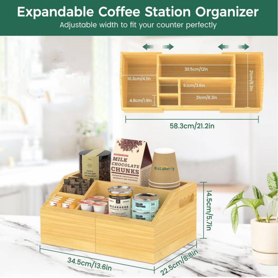 Bamboo Tea & Coffee Station Organizer Paper K-Cup Pods Holder with Handle Countertop Accessories Storage Basket