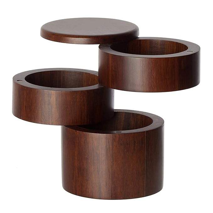 Bamboo Triple Salt Cellar 3 Tier Kitchen Salt and Pepper Storage Box Round Stash Jar With Magnetic Swivel Lids