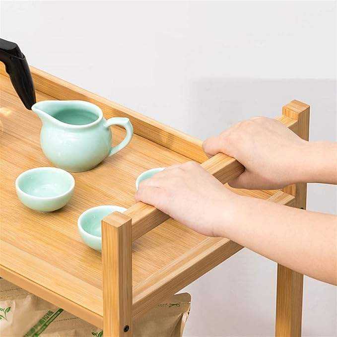 Bamboo Trolley Rolling Cart End Table Modern Wooden Removable Desk for Living Room