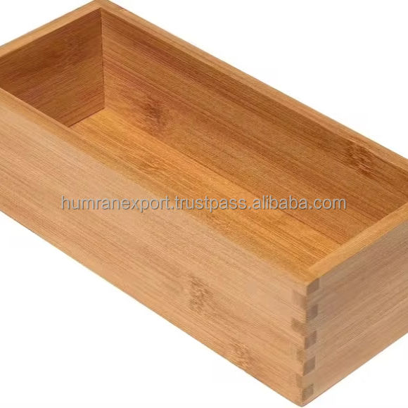 Bamboo Utensil Holder Storage Box for Cooking Tools, Makeup, or Office Supplies, 4" X 9 1/4" X 3"