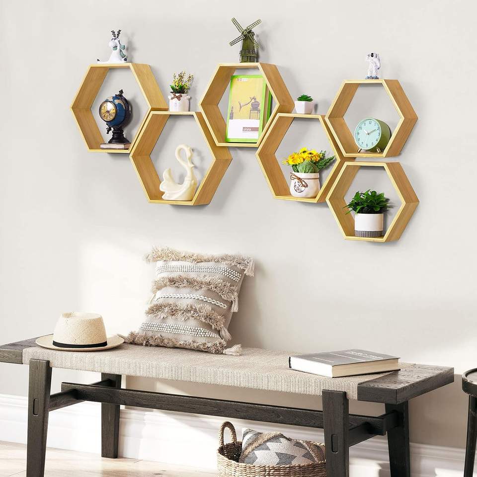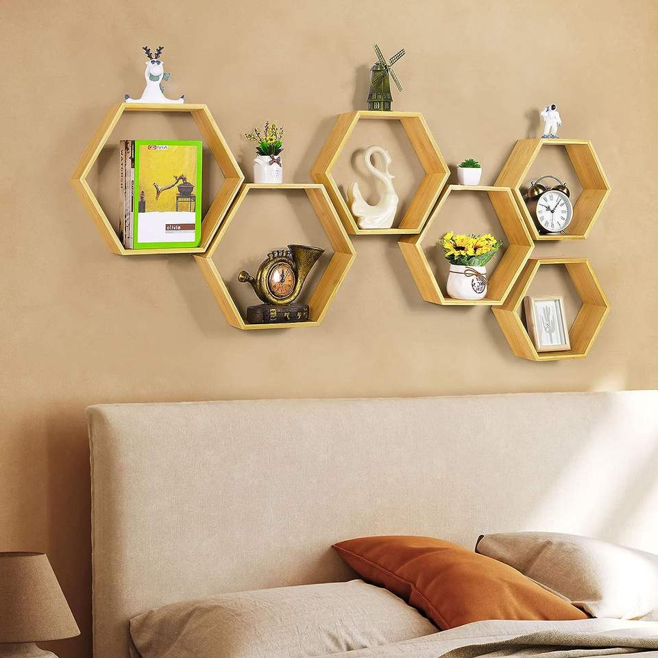 Bamboo Wall Honeycomb Floating Shelf Display Storage Rack for Wall Decor Hexagon Shelves for Living Room Hallway Farmhouse