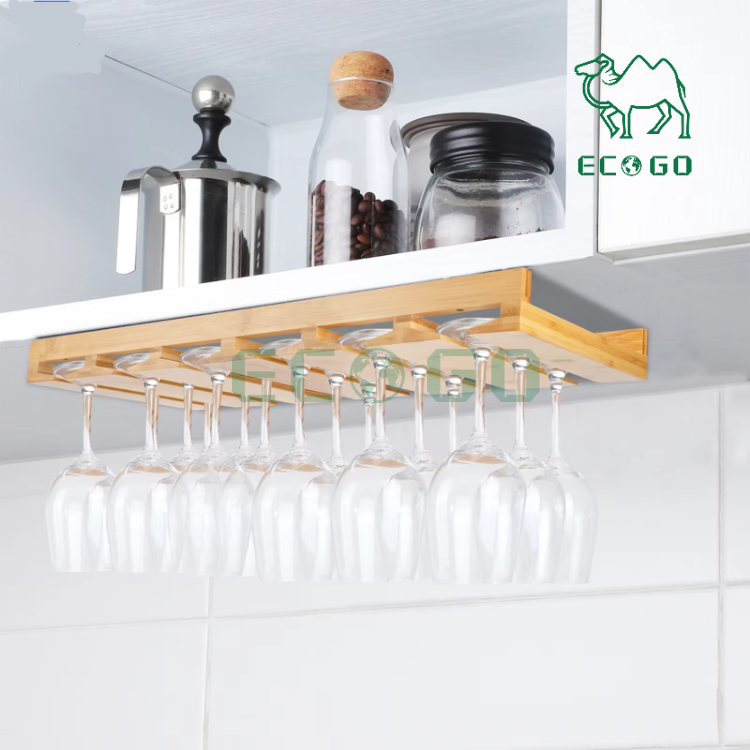 Bamboo Wine Glass Holder 6 Glass Hanging Display Rack Wine Glass Drying Storage
