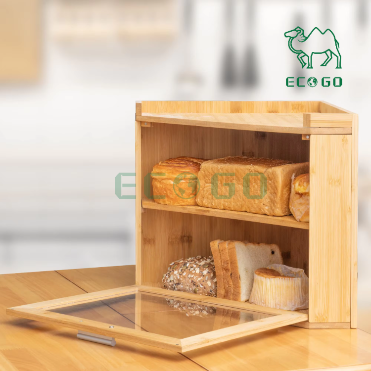 Bamboo Wood Bread Storage Container and Corner Bread Holder Bread Box