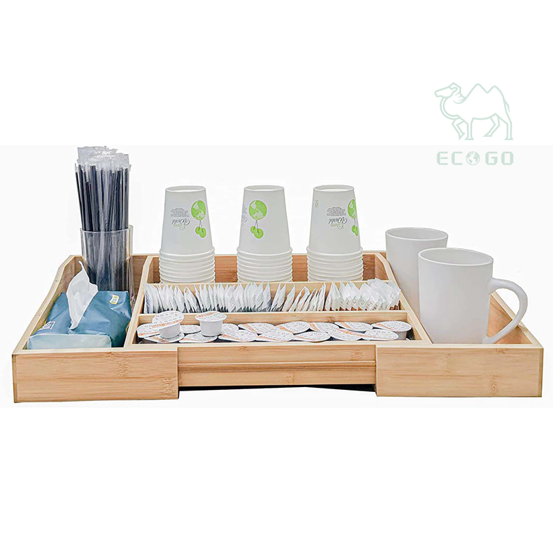 Bamboo Wood Countertop Organizer Bin Storage Box Expandable for Organization Kitchen Bathroom Pantry Office