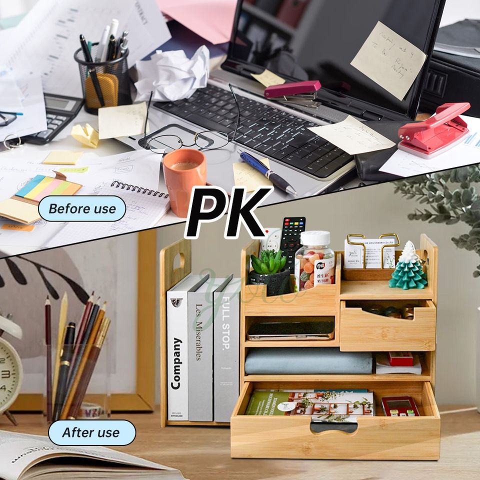 Bamboo Wood Desk Organizer with Adjustable File Holder 3-Tier Desktop Organization and Accessories for Home Office School