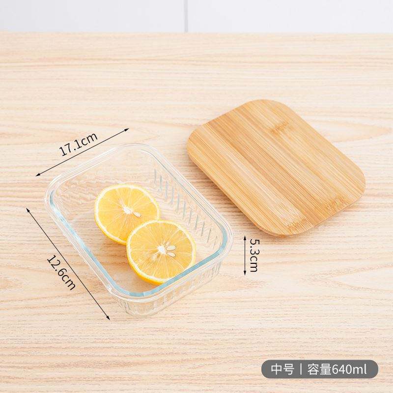 Bamboo Wood Lid Vertical Grain Glass Rectangular Crisper Box Microwave Oven Heated Bento Lunch Picnic Newborn Preservation