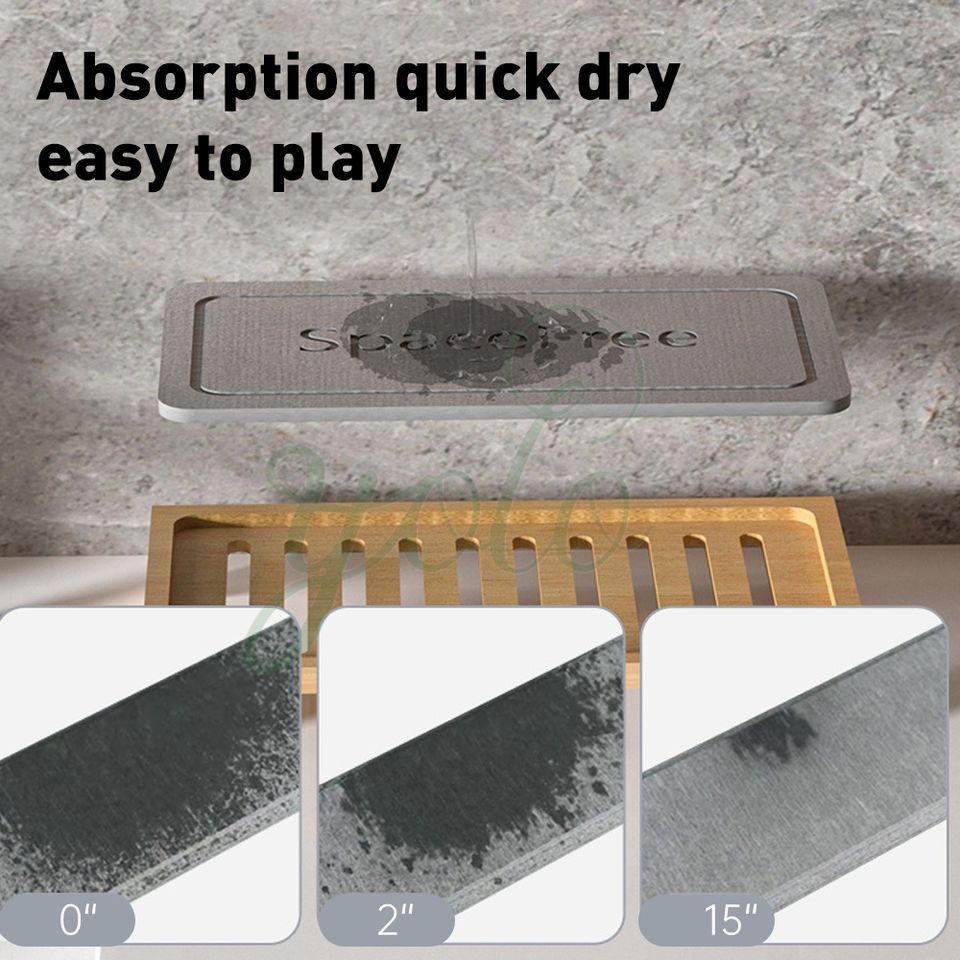 Name:Bamboo Wood Utensils Sink Diatomite Dish Rack
