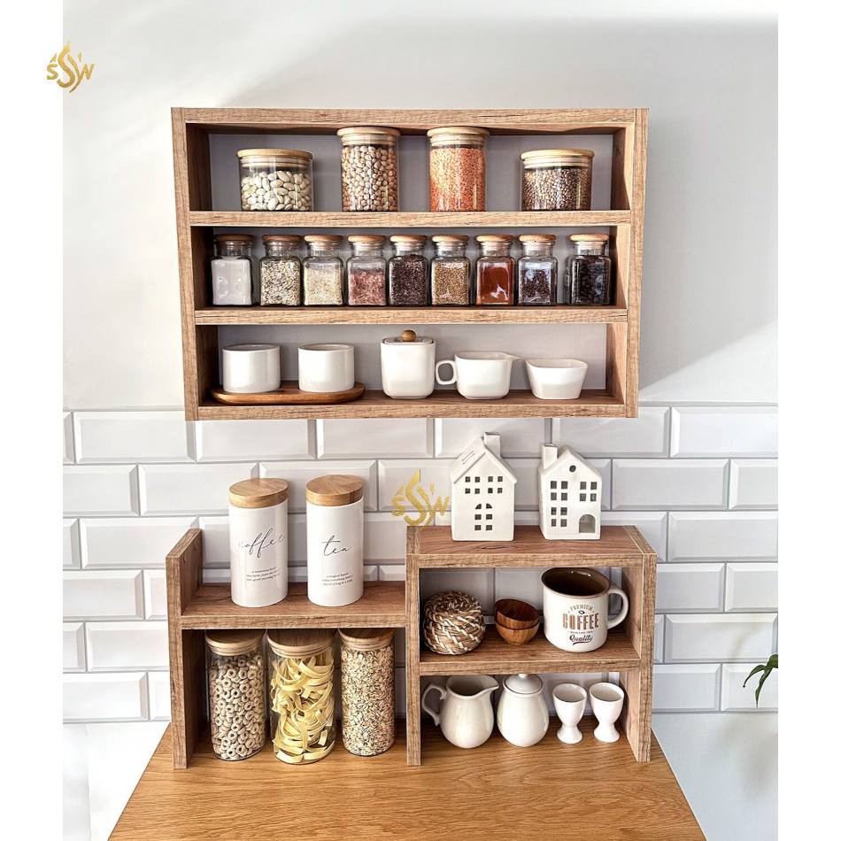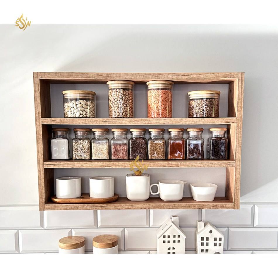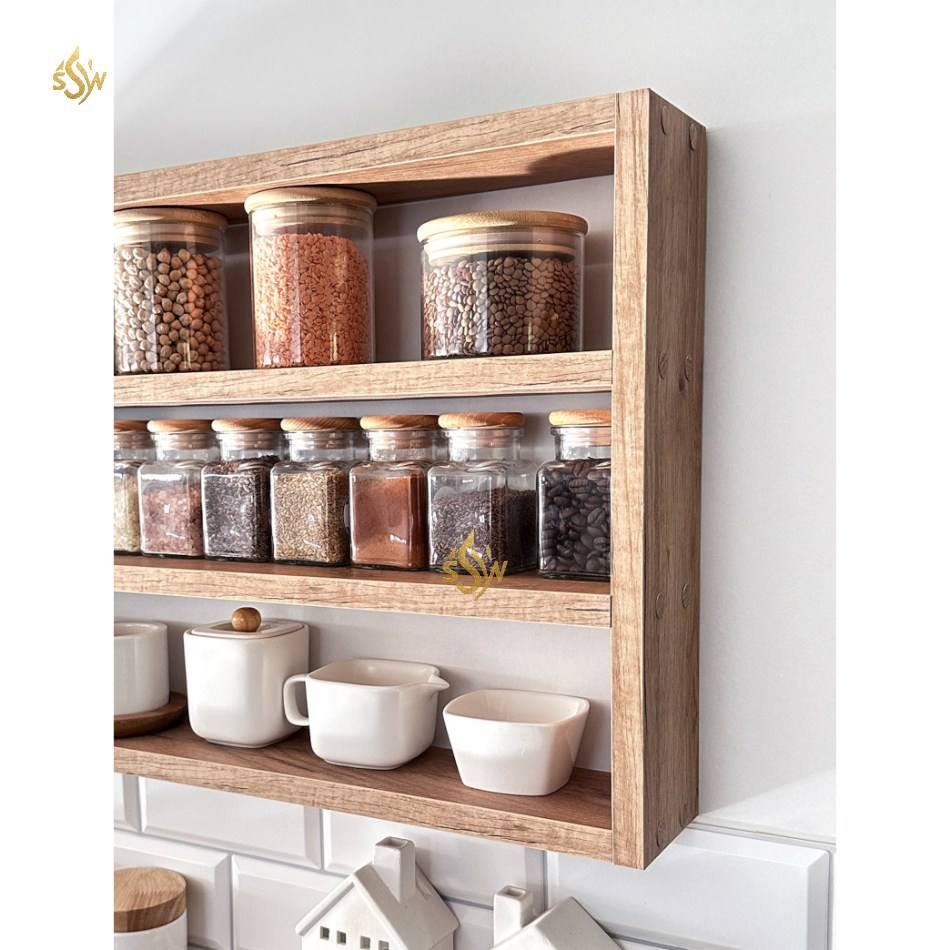 Bamboo Wood Material Large Size Handmade Kitchen Spices Storage Rack and Shelving Hot Selling 3 Tier New Look Kitchen Spice Rack