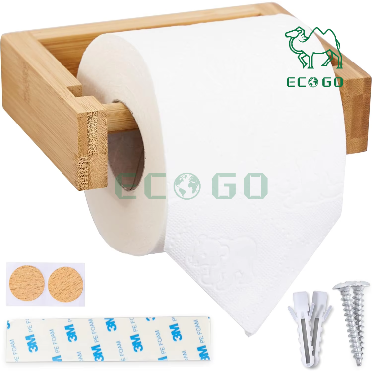 Bamboo Wood Toilet Paper Holder Wall Mount Wooden Toilet Tissue Holder Bamboo Roll Paper Holder