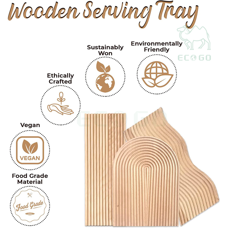 Bamboo Wood Tray Set Water Ripple Board