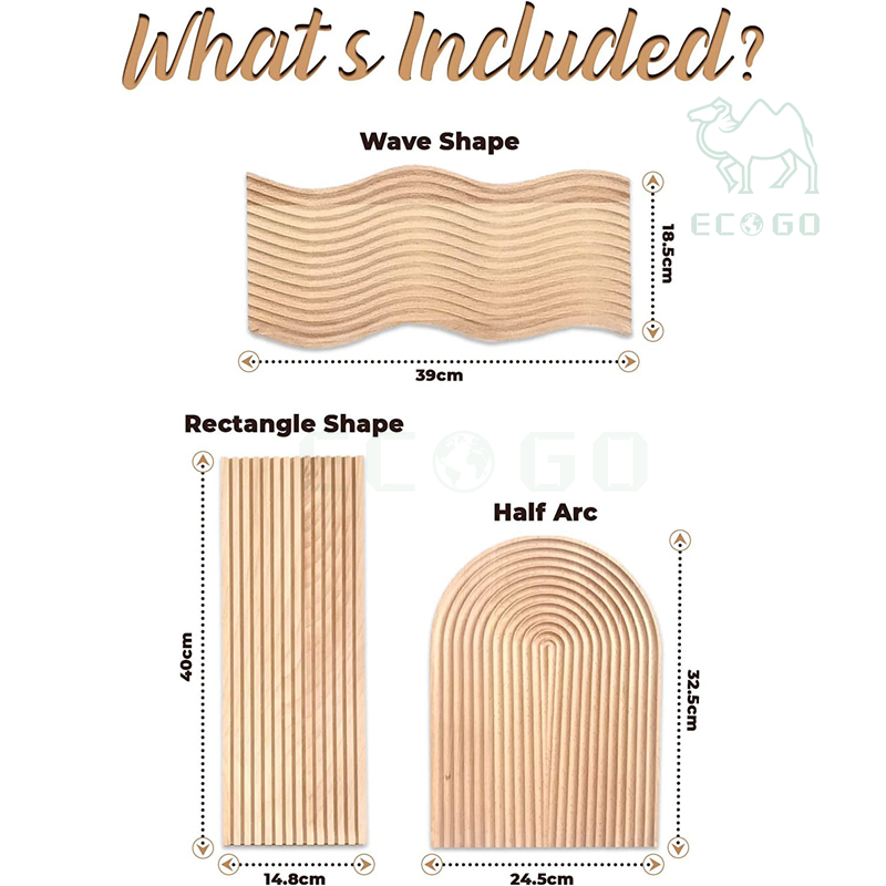 Bamboo Wood Tray Set of Wavy Arch Rectangular Geometric Design Water Ripple Board Afternoon Tea Snack Plate Home