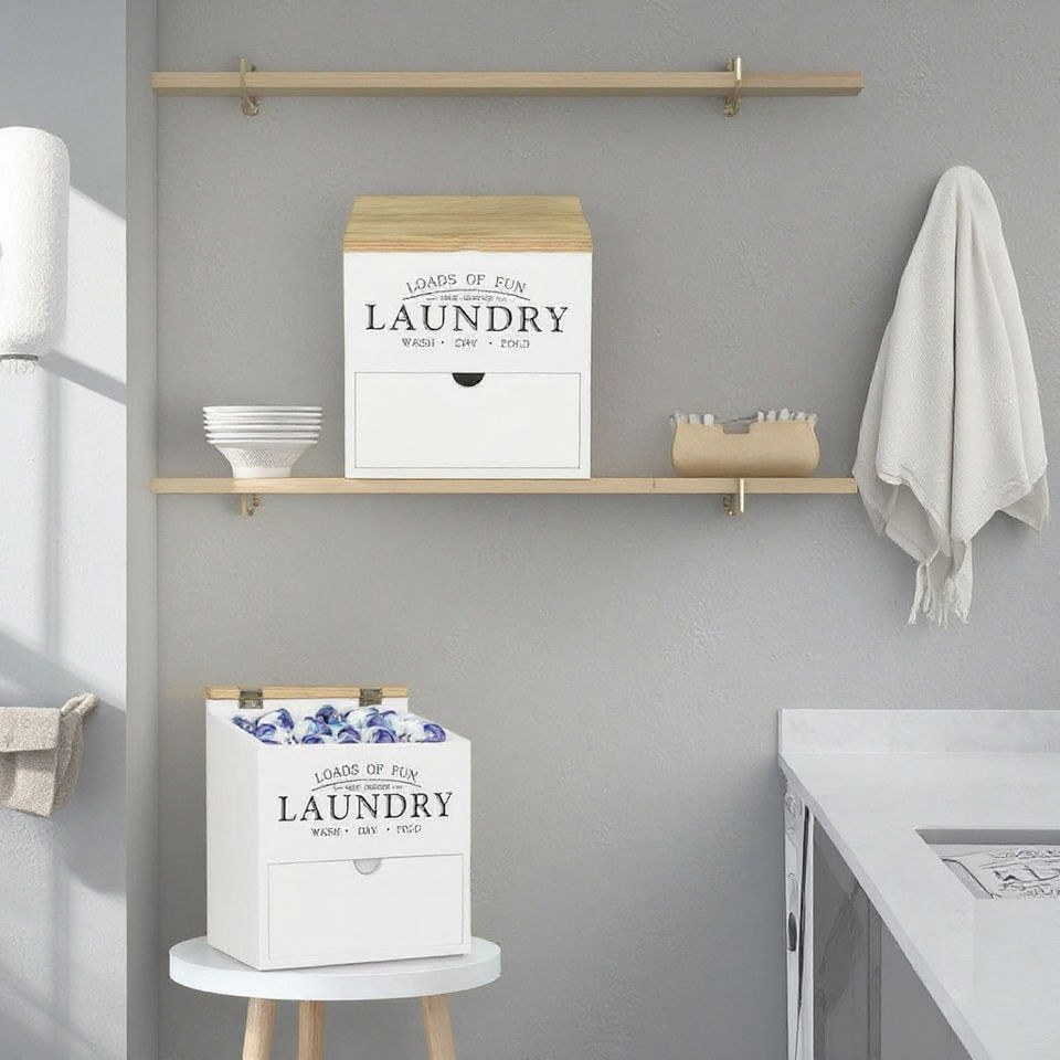 Bamboo Wooden Laundry Pods Container with Lid and Drawer