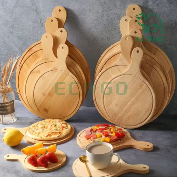 Bamboo Wooden Pizza Peel Round Pizza Paddle Cutting Serving Board Food Platters Pizza Platter