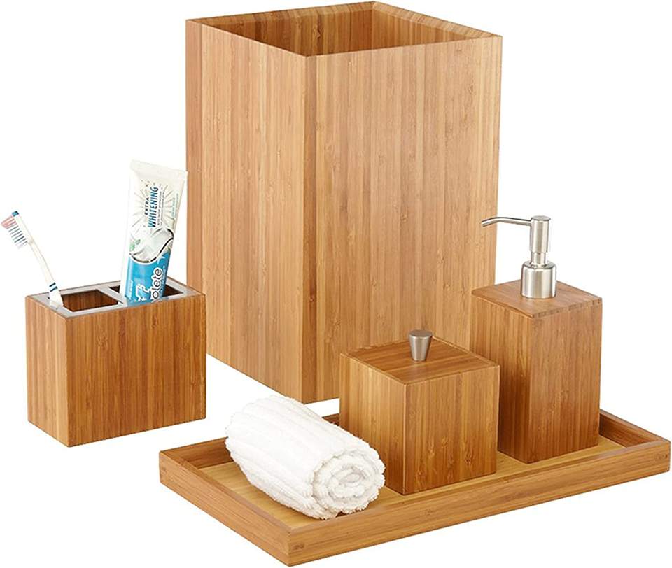 Bamboo Wooden Products Luxury Bathroom Essentials Accessory Set
