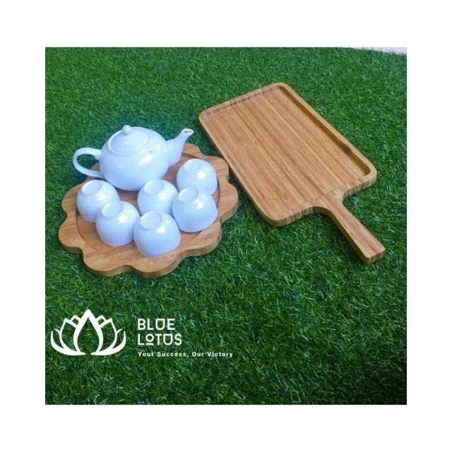 Bamboo Wooden Serving Tray for Fruit Snack Tea Cake Serving Plates Saucers With Round Rectangle Thin Edge