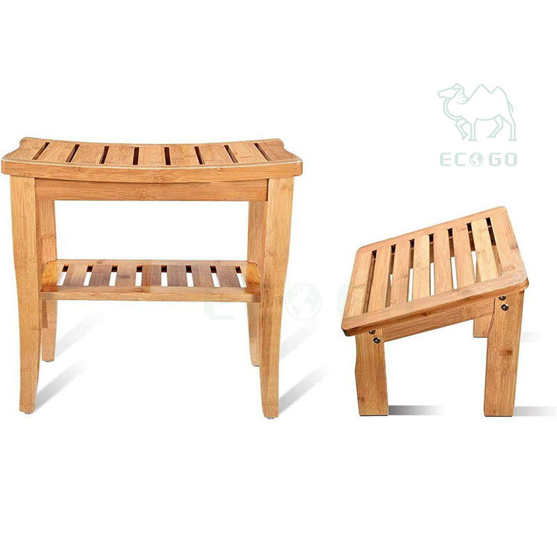 Bamboo Wooden Shower Bench Seat Set With Underneath Storage Shelf As a Foot Stool Use on Different Ways