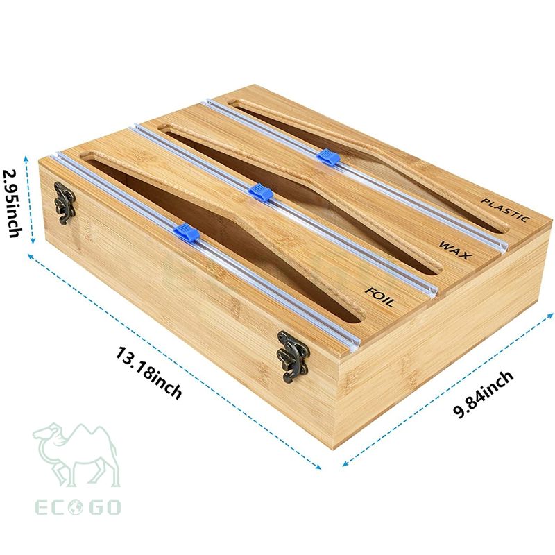 Bamboo Wrap Dispenser with Cutter, Plastic Wrap, Aluminum Foil and Wax Paper Dispenser Bamboo Roll Storage Organizer Holder
