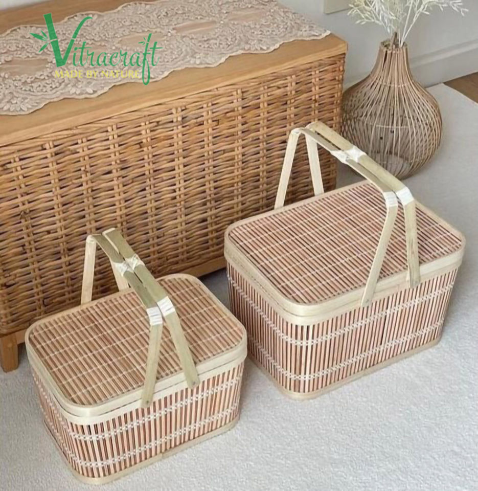 Bamboo and rattan baskets with lids, rattan baskets for gifts and food,Picnic basket.Vietnamese handmade basket.Size 28x20x18cm Handmade Vietnam Unique gift