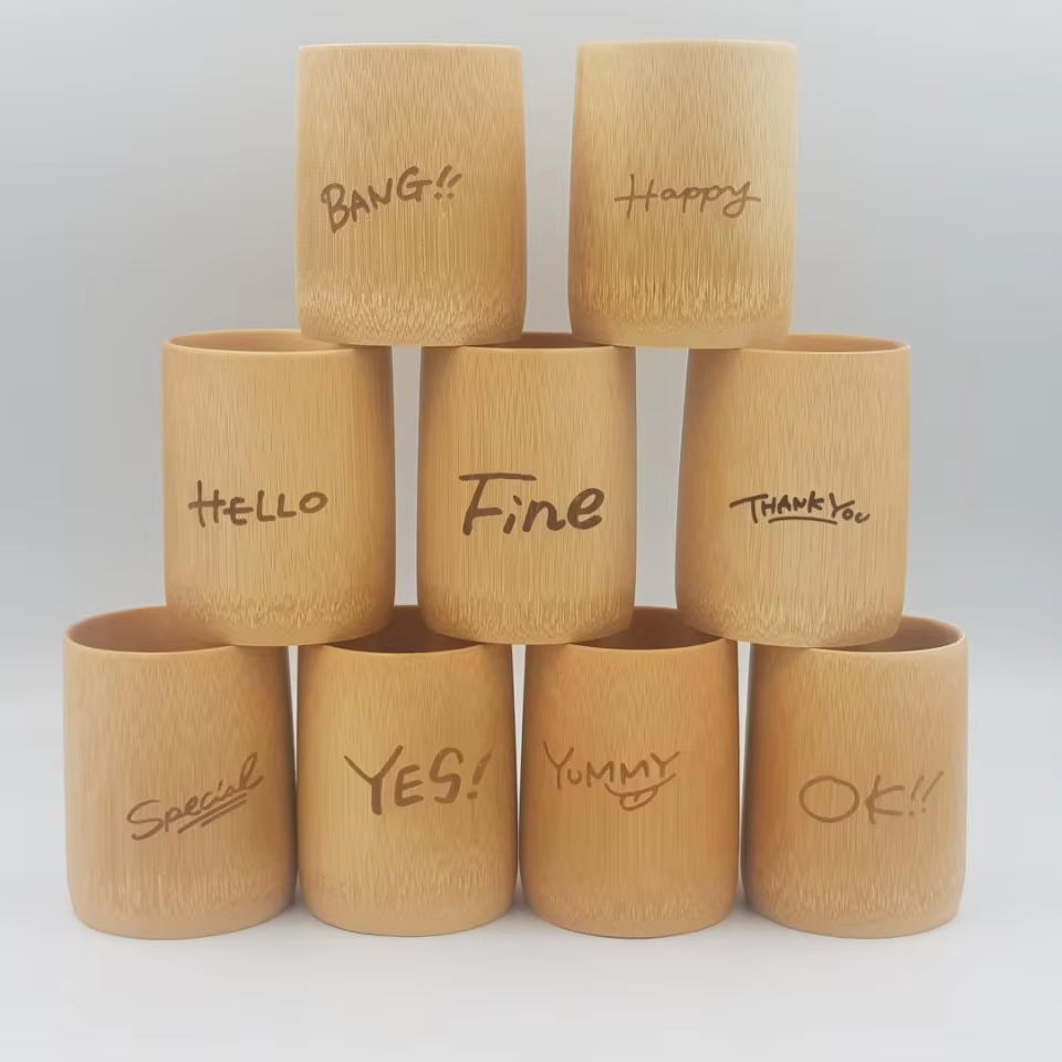Bamboo cups engraved with slogans Made in Vietnam Eco friendly material used for Home decoration Table decoration Wholesale