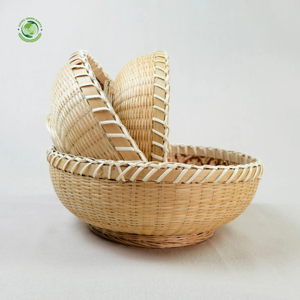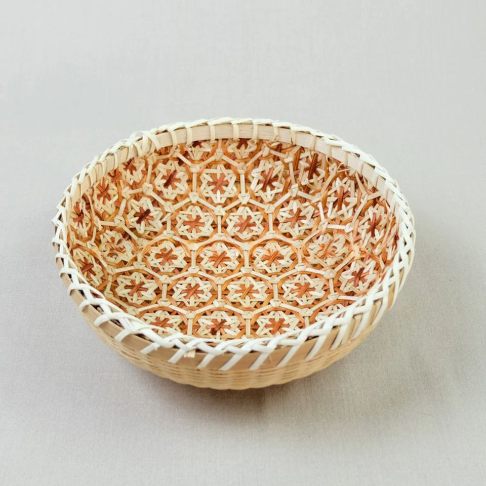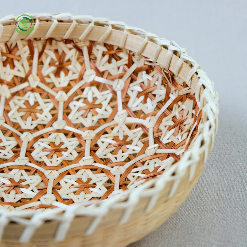 Name:Bamboo fruit bowl with woven asterisk pattern Size: D9,8 x H4 inch