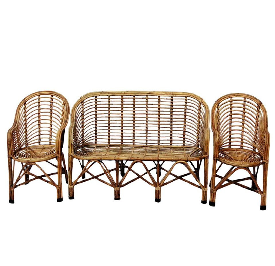 Bamboo sofa set, 3-seater & 2 armchairs, natural finish, white thin cushions, oval table available at wholesale cheap prices