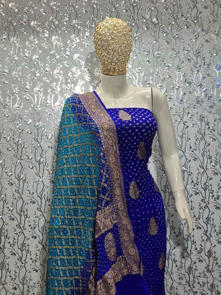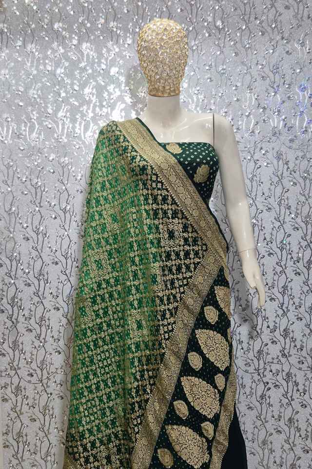 Banarasi Chiffon Georgette Bandhani Traditional Suit Set Handloom Gota Patti Zari Work Quick Dry Elegant Ethnic Festive Party