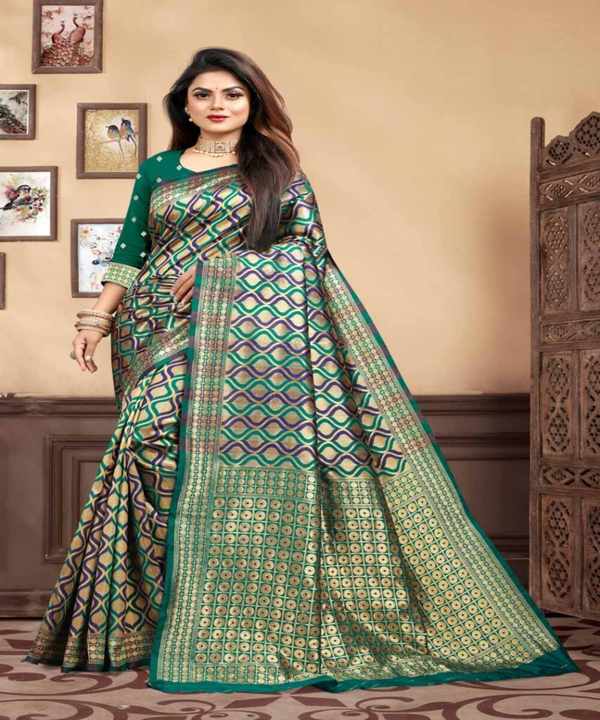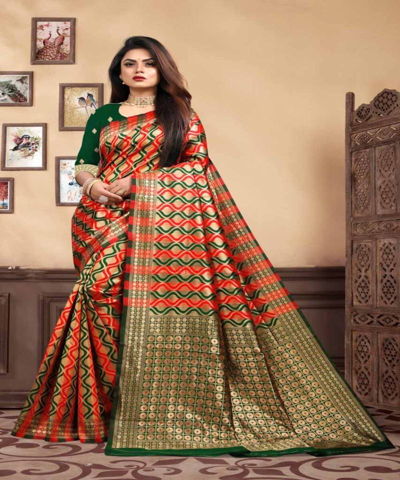Banarasi Silk Jacquard Saree with Blouse Women Wear Ladies Party Festival Daily Wear Soft Cotton Silk Sari Wholesale Low Price Garment