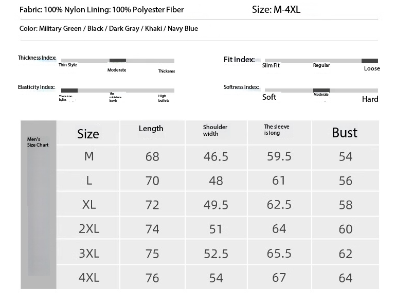 Color:black Navy blue militarygreen Khaki Dark gray