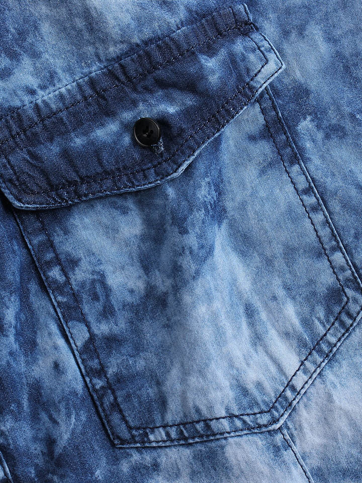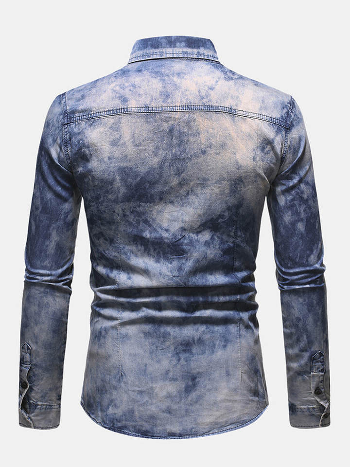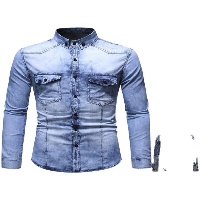 Bangladesh Factory Men's Casual Fashion Branded Dress Shirt 100% Cotton Woven Tie-Dye Jeans Denim Long Sleeve Plus Size