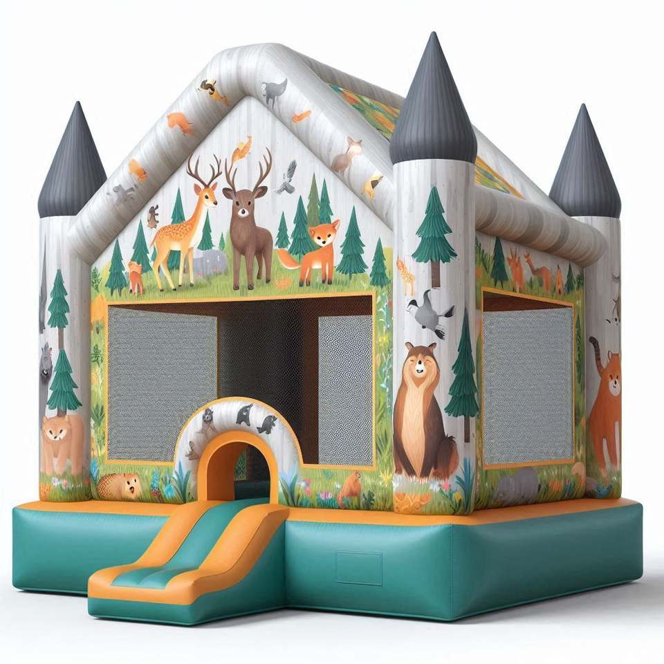 Bangladesh Factory Sales Pink Blue Jumping House Castle Slide with Print Animal Patterns Inflatable Princess Bounce Castle