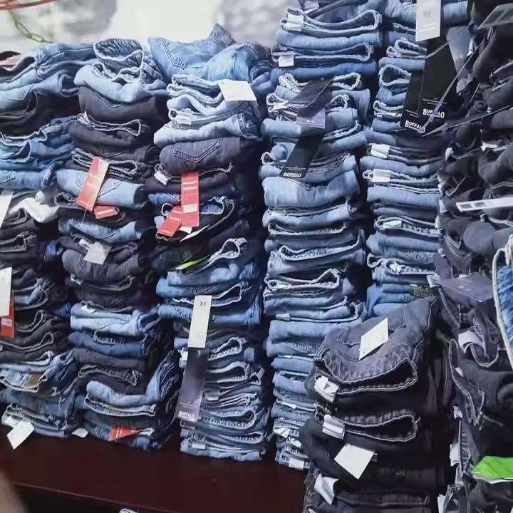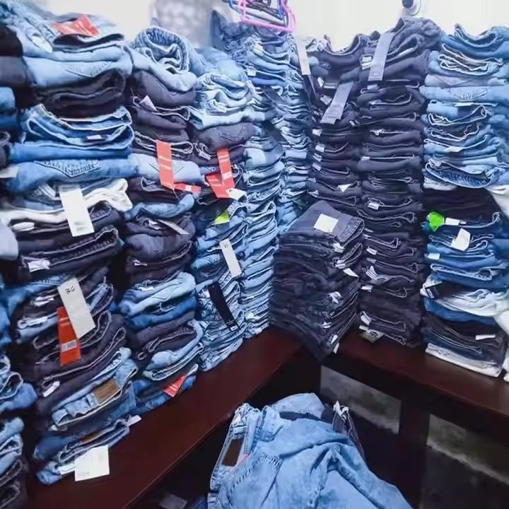 Bangladesh Original Cotton Denim Jeans Low Price Stock Lot Men Women Ladies Girls Boys Skinny Pants Overstock Apparels