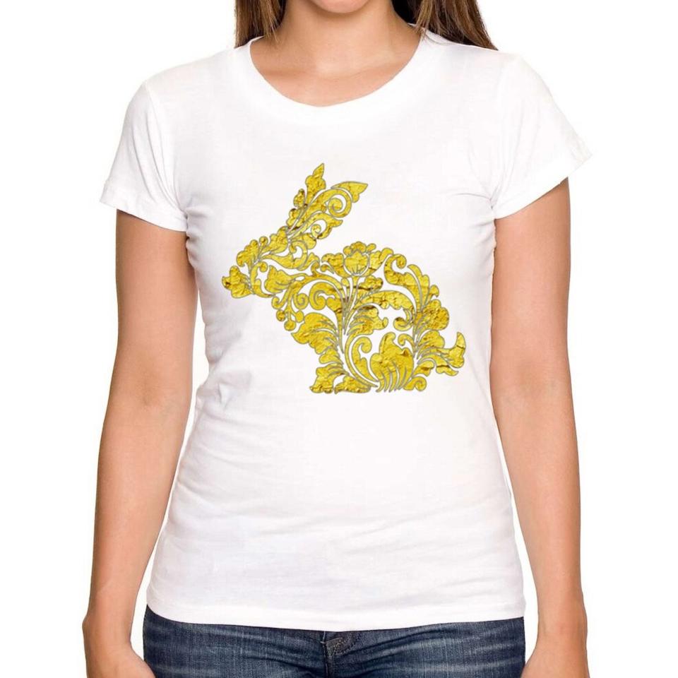 Women's Cream Multicolored Printed T-Shirt with Gilt Detail on the Front