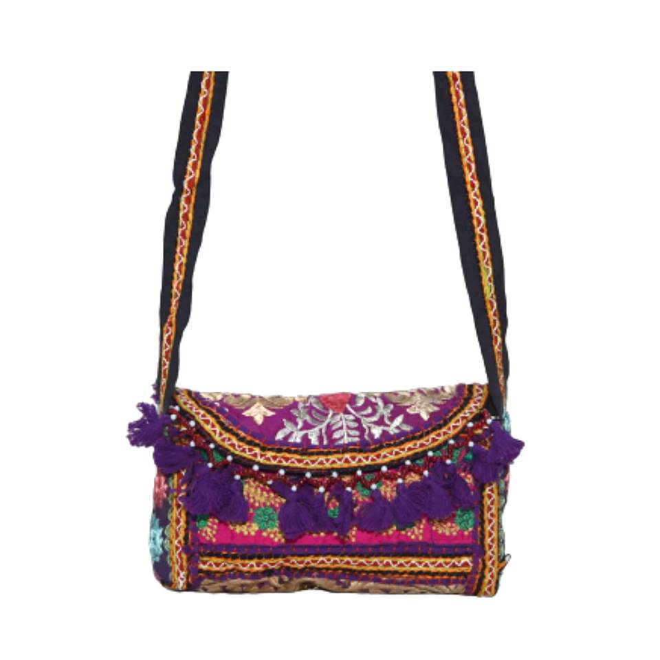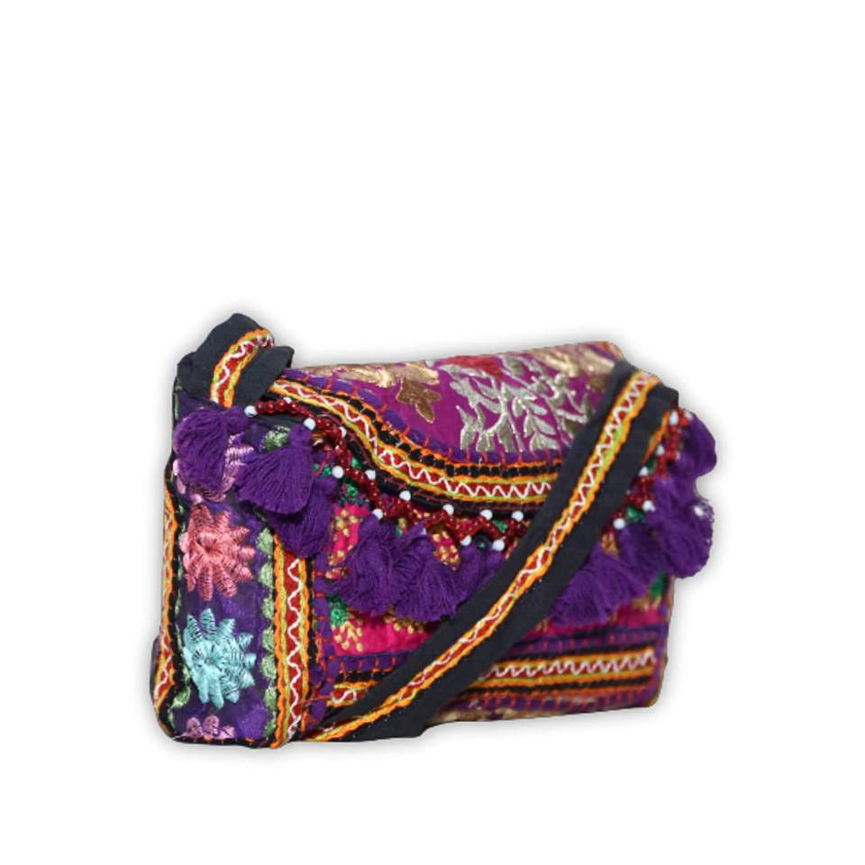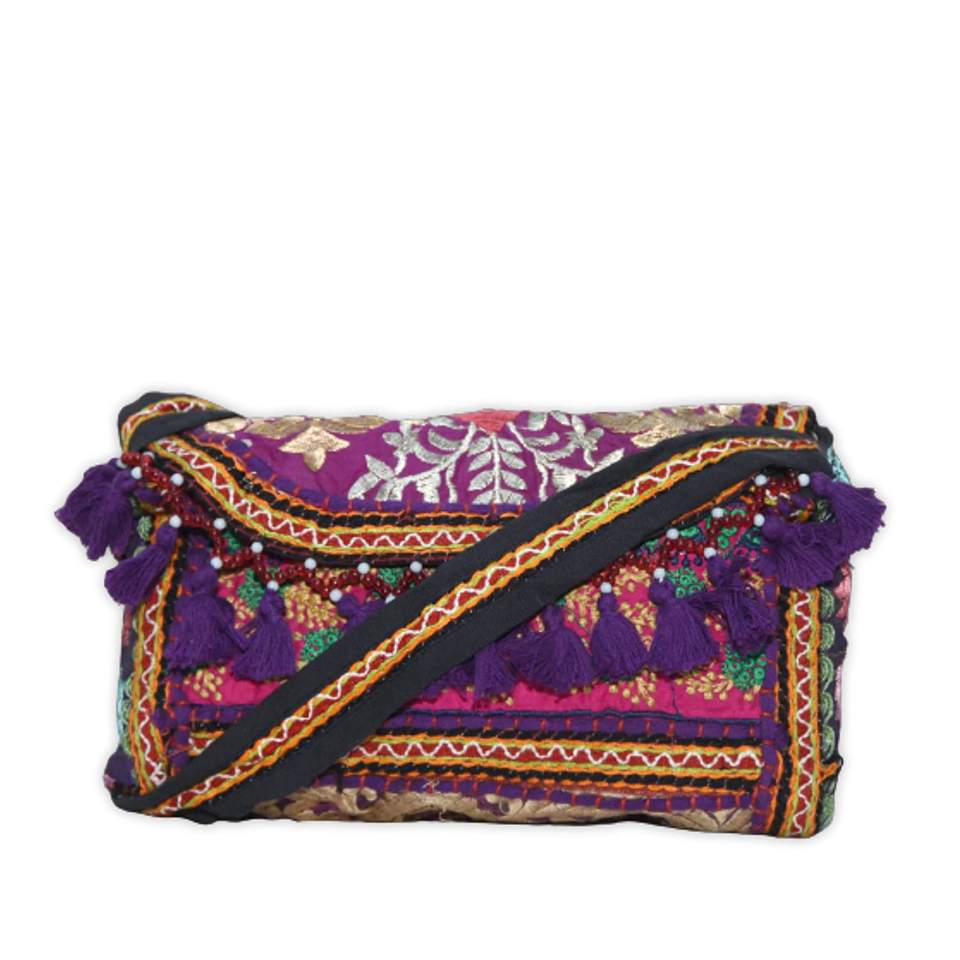 Banjara Ethnic Canvas Handbag for Women & Girls Handcrafted Envelope Style Clutch Traditional Embroidery Chain Bow Tassel Open
