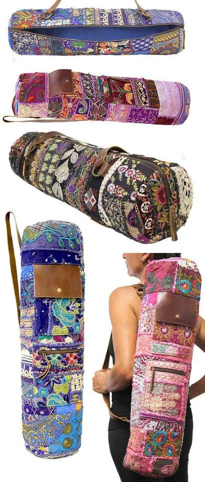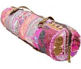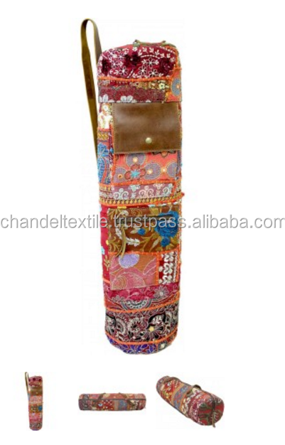 Banjara Style Vintage Kantha Cross Body Yoga Pouch Retro Fashion Handbag with Canvas Lining Zipper Bow Detail & Hand Embroidered