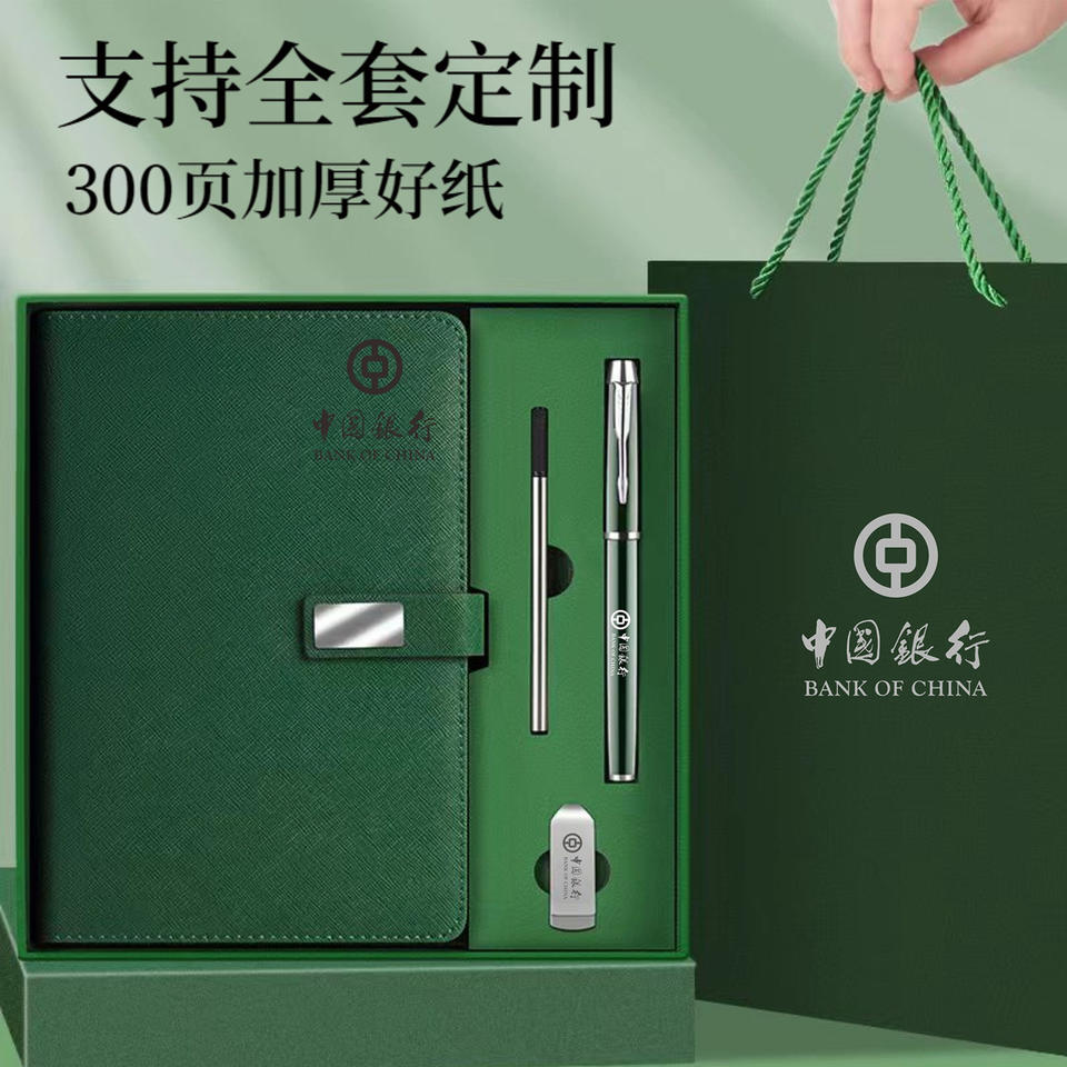 Bank Of China A5 Business Notebook Pu Leather 300 Pages Embossing Printing Gift Set With Pen Custom Logo
