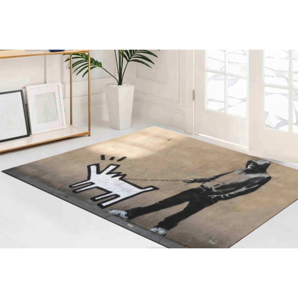 Banksy Barking Dog Rug: Street Art Accent Rug, Printed Rug,Nonwoven Soft Rug