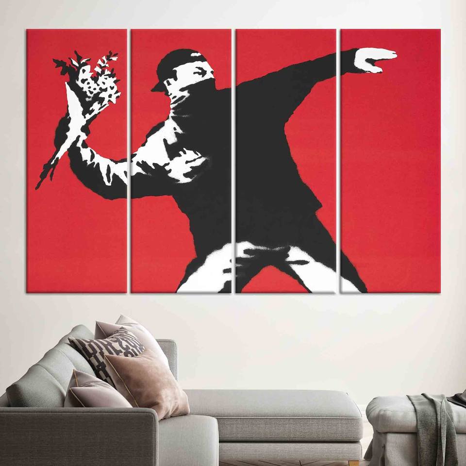 Banksy Flower Thrower Printed Canvas: Urban Graffiti Art Decor,SET OF 4 CANVAS