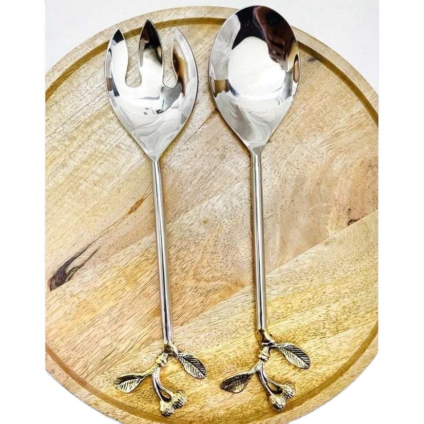 Banquet Use Silver Finishing Stainless Steel Salad Server Set, Leave Designer Metal Serving Utensils for Events & Catering