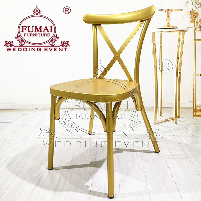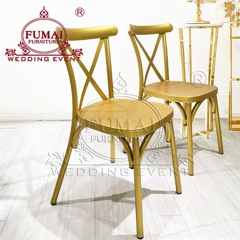 Banqueting furniture cross back gold iron metal hotel banquet chair
