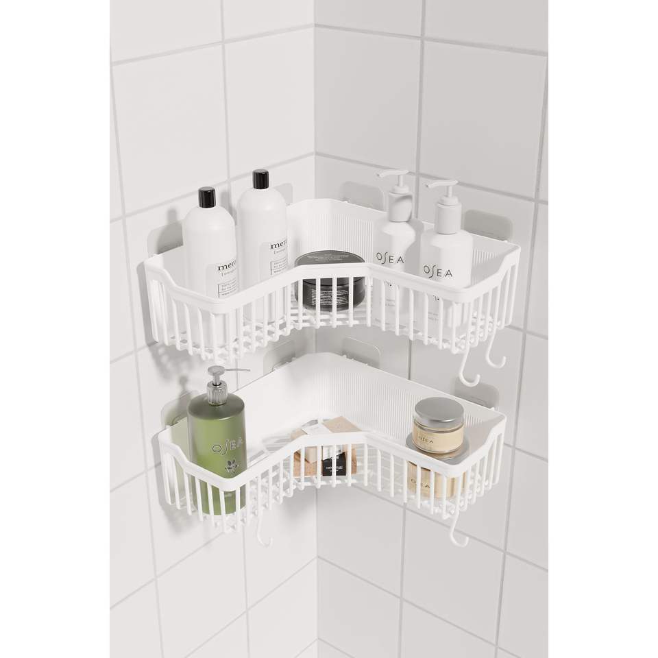 Banyor Plastic White Corner Shower Shelf Bathroom Wall Mounted Organizer with Shampoo Holder