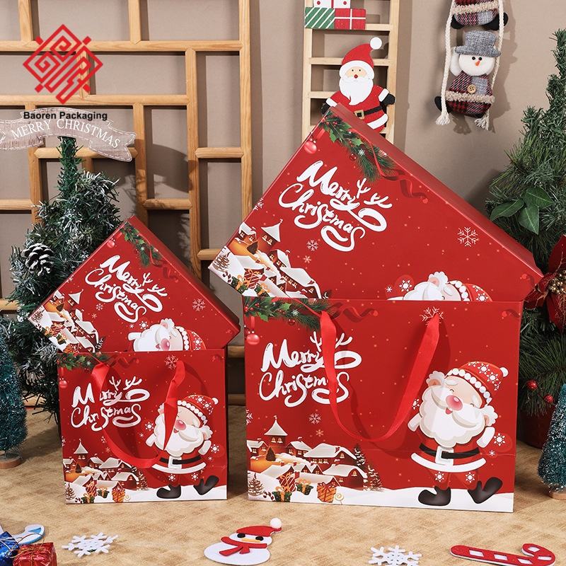 Baoren 2025 High-End Reusable Eco-Friendly Christmas Gift Boxes Creative Empty Red Scarf Insulated Cup Gingerbread Paper