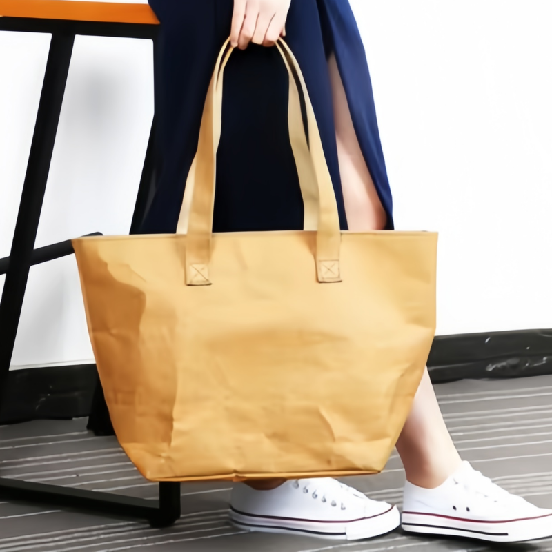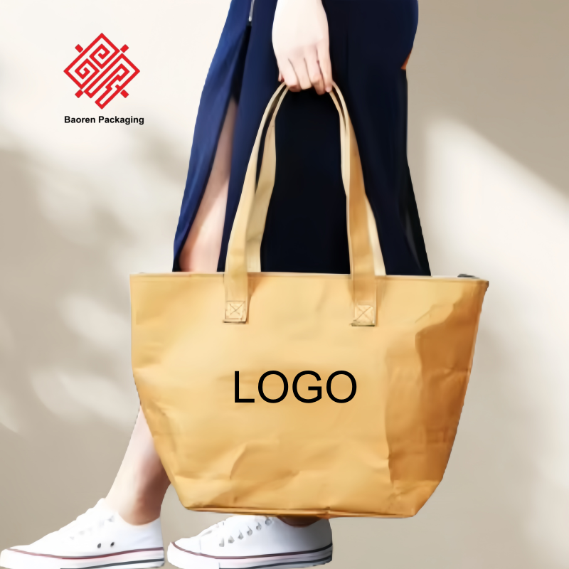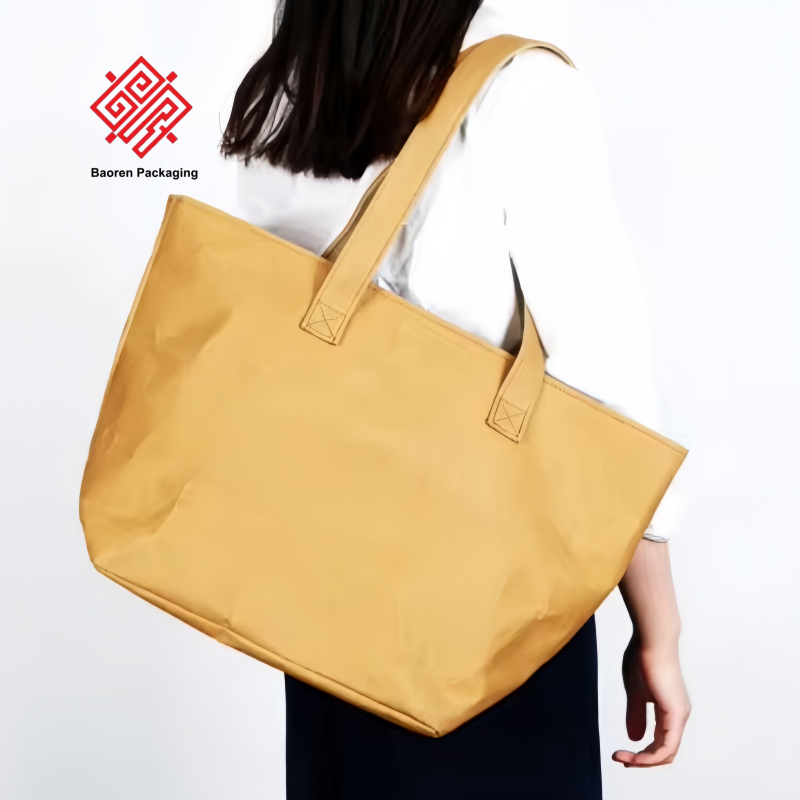 Baoren Add Logo Recycled Plain Paperbags Lightweight Handle Packaging Brown Washable Flat Bottom Customized Kraft Paper Toto Bag