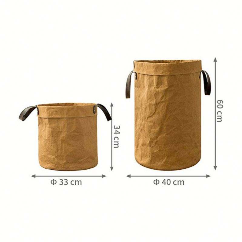 Baoren Large Custom Washable Kraft Paper Bag PU Handles Collapsible Laundry Hamper for Clothes Toys Easy Carry Storage Basket