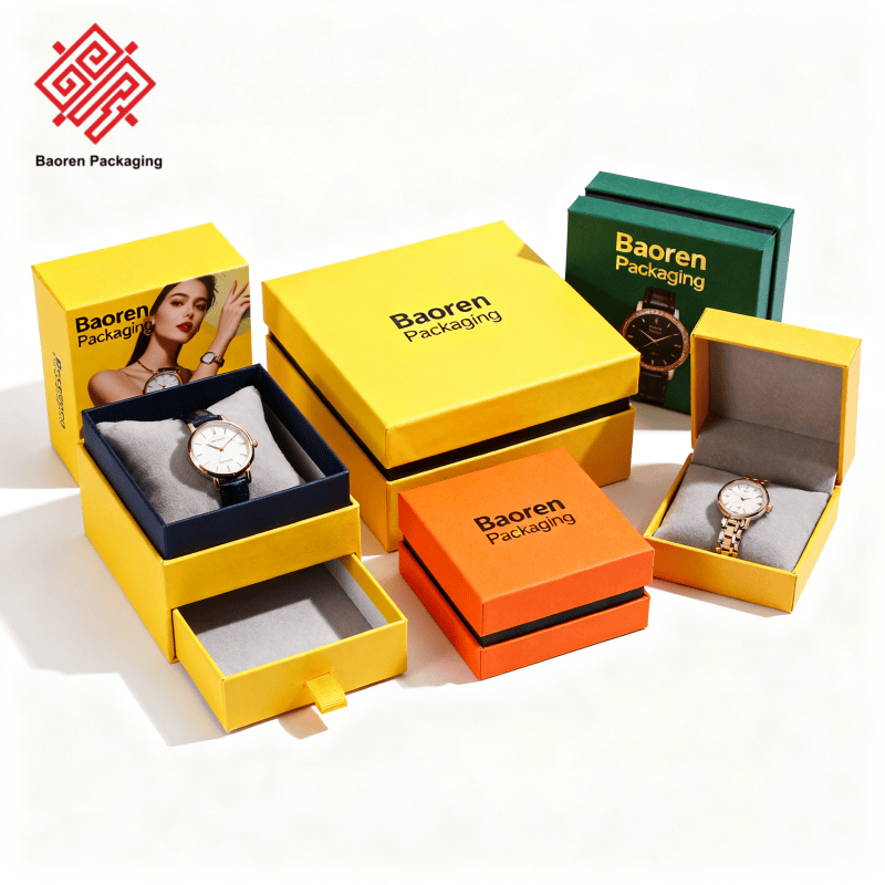Baoren Luxury Personalized Slotted Boxes Eco-Friendly Biodegradable Customized Watch Jewelry Necklace Ring Gift Packaging