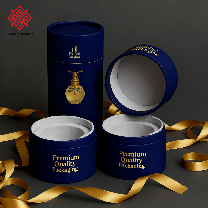 Baoren Navy Dark Blue Rotundity Circle Ring Flat Tube Boxes Packaging Soap Balm Pomade Candle Biodegradable Paper Deodorant Tube
